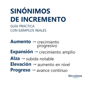 Sinónimos de incremento en español Los sinónimos de “incremento” abarcan matices como aumento, crecimiento, alza, subida, ampliación, expansión, acrecentamiento, intensificación,
