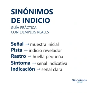 Sinónimos de indicio en español Los sinónimos de “indicio” abarcan matices como señal, pista, rastro, huella, vestigio, síntoma, evidencia, prueba,