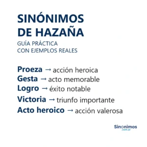 Sinónimos de hazaña en español Los sinónimos de “hazaña” abarcan matices como proeza, gesta, heroicidad, heroísmo, logro, hito, acción heroica,