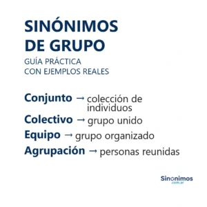 Sinónimos de grupo en español Los sinónimos de “grupo” abarcan matices como conjunto, colectivo, agrupación, equipo, banda, cuadrilla, clan, comunidad,