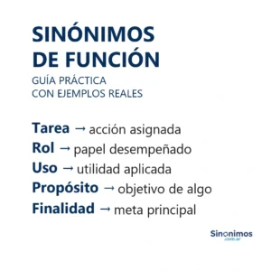 Sinónimos de función en español Los sinónimos de “función” abarcan matices como rol, papel, cometido, misión, cargo, tarea, labor, finalidad,