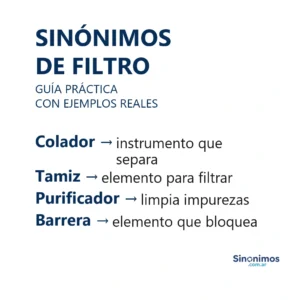 Sinónimos de filtro en español Los sinónimos de “filtro” abarcan ideas como colador, tamiz, cedazo, criba, depurador, purificador, barrera, pantalla,