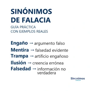 Sinónimos de falacia en español Los sinónimos de “falacia” abarcan matices como engaño, mentira, falsedad, sofisma, artimaña, truco, argucia, embuste,
