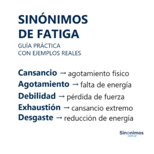 Sinónimos de fatiga en español Los sinónimos de “fatiga” abarcan matices como cansancio, agotamiento, extenuación, debilidad, lassitud, desgaste, somnolencia, hartazgo