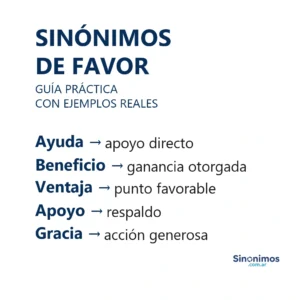 Sinónimos de favor en español Los sinónimos de “favor” abarcan matices como ayuda, apoyo, beneficio, ventaja, gracia, benevolencia, simpatía, preferencia,