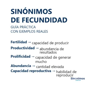 Sinónimos de fecundidad en español Los sinónimos de “fecundidad” abarcan matices como fertilidad, capacidad reproductiva, productividad, abundancia, riqueza, prolíficidad, exuberancia