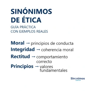 Sinónimos de ética en español Los sinónimos de “ética” abarcan matices como moral, moralidad, rectitud, integridad, honestidad, probidad, deontología, código