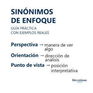 Sinónimos de enfoque en español Los sinónimos de “enfoque” abarcan matices como perspectiva, punto de vista, óptica, orientación, planteamiento, aproximación,