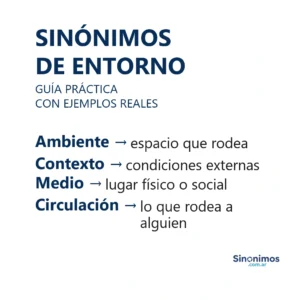 Sinónimos de entorno en español Los sinónimos de “entorno” abarcan matices como ambiente, medio, contexto, alrededores, ámbito, marco, esfera, círculo,