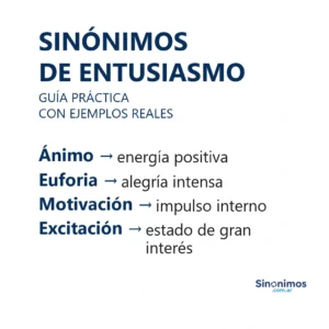 Sinónimos de entusiasmo en español Los sinónimos de “entusiasmo” abarcan matices como ilusión, ánimo, motivación, pasión, fervor, euforia, ímpetu, ardor,