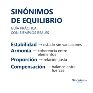 Sinónimos de equilibrio en español Los sinónimos de “equilibrio” abarcan matices como balance, armonía, estabilidad, proporción, mesura, moderación, serenidad, temple,
