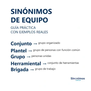 Sinónimos de equipo en español Los sinónimos de “equipo” abarcan matices como grupo, conjunto, plantilla, plantel, escuadra, selección, elenco, staff, […]