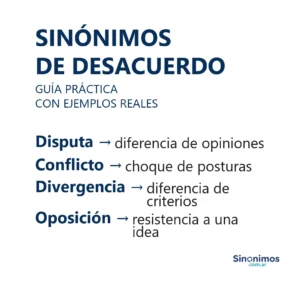 Sinónimos de desacuerdo en español Los sinónimos de “desacuerdo” abarcan matices como discrepancia, divergencia, disconformidad, discordia, desavenencia, conflicto, disputa, controversia,
