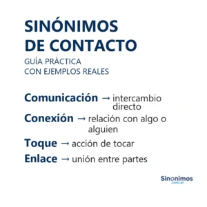 Sinónimos de contacto en español Los sinónimos de “contacto” abarcan sentidos como comunicación, vínculo, relación, conexión, trato, interacción, roce o