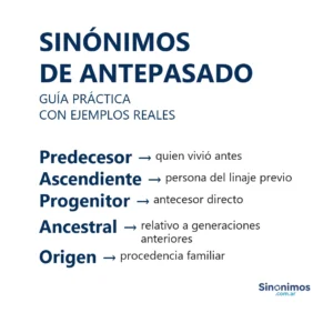 Sinónimos de antepasado en español Los principales sinónimos de “antepasado” son ancestro, antecesor, ascendiente, progenitor, predecesor y expresiones como antepasado