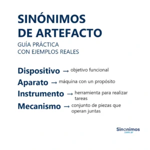 Sinónimos de artefacto en español Los sinónimos de “artefacto” abarcan sentidos como aparato, dispositivo, mecanismo, ingenio, utensilio, instrumento, equipo, máquina,