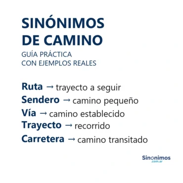 Sinónimos de camino en español Los sinónimos de “camino” abarcan sentidos como ruta, sendero, trayecto, recorrido, vía, carretera, itinerario, trayectoria