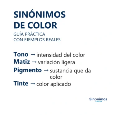 Sinónimos de color en español Los sinónimos de “color” abarcan sentidos como tono, tonalidad, matiz, tinte, pigmento, cromatismo, coloración, colorido