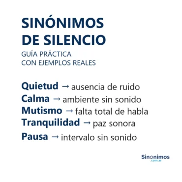 Sinónimos de silencio en español Los sinónimos de “silencio” abarcan sentidos como mutismo, quietud, calma, sigilo, discreción, reserva, mudez o