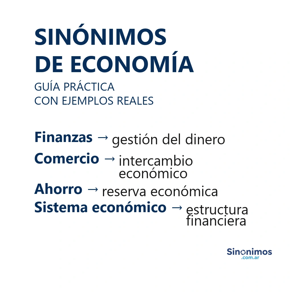 Según el contexto, “economía” puede equivaler a sistema económico, ciencia económica, ahorro, austeridad, gestión o presupuesto. La siguiente tabla resume los usos más habituales y los sinónimos más adecuados.