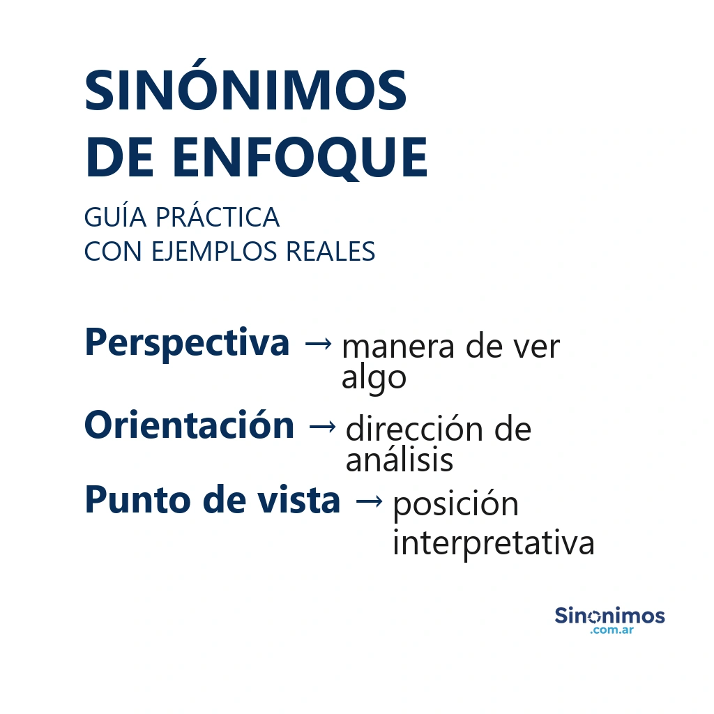 A continuación se agrupan los sinónimos de “enfoque” según el tipo de perspectiva, orientación o foco que expresan.