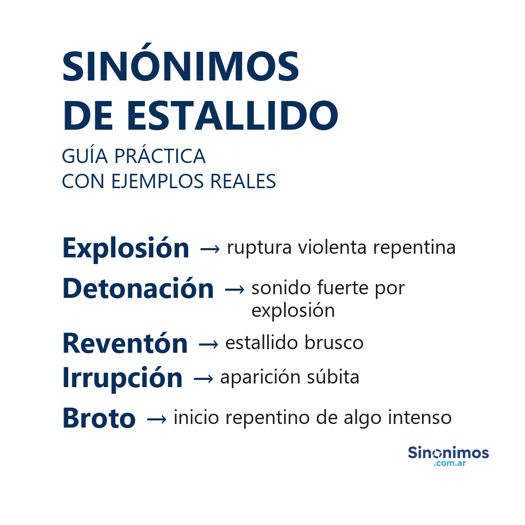 A continuación se agrupan los sinónimos de “estallido” según el tipo de explosión, ruido o manifestación repentina que expresan.
