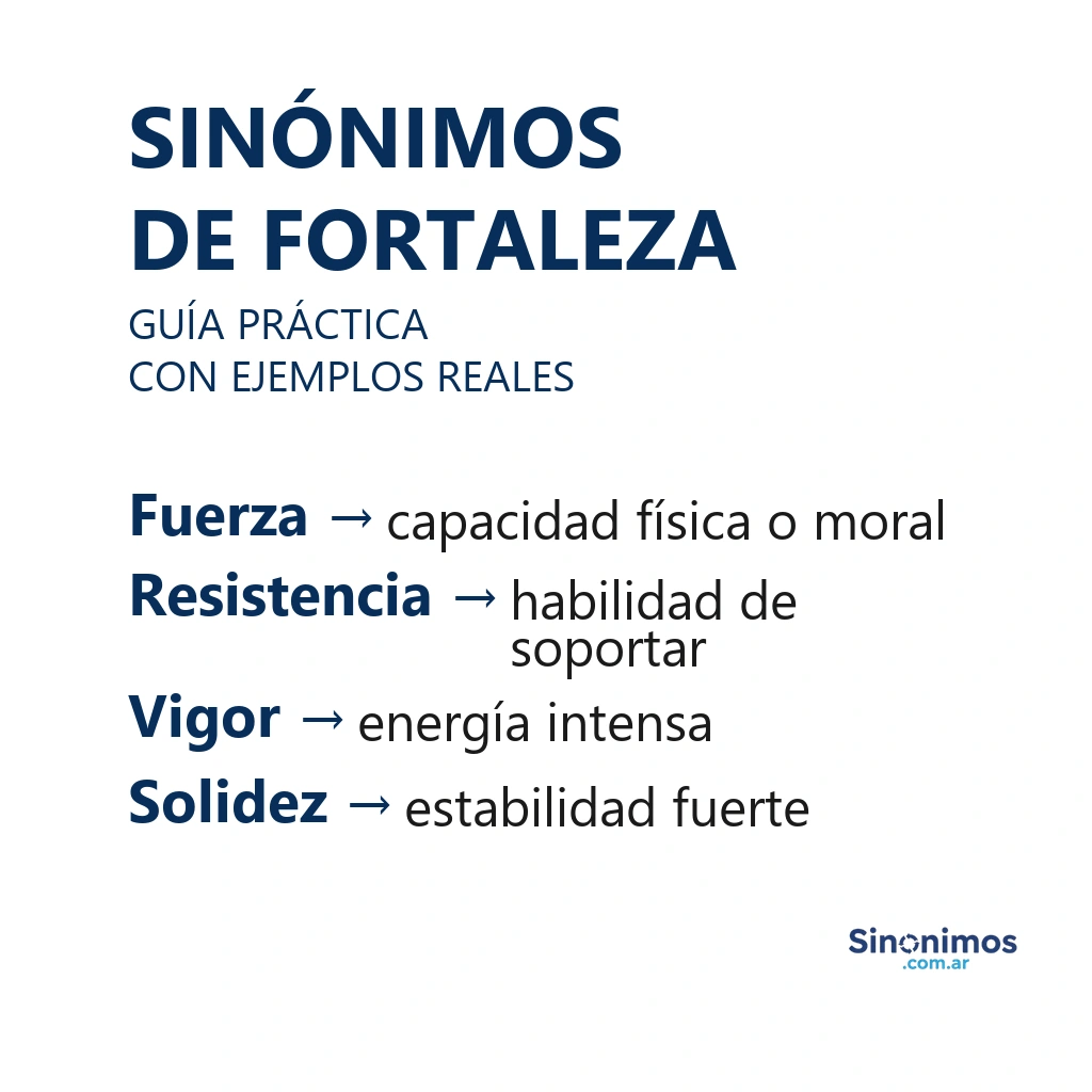 A continuación se agrupan los sinónimos de “fortaleza” según el tipo de fuerza, resistencia o solidez que expresan.