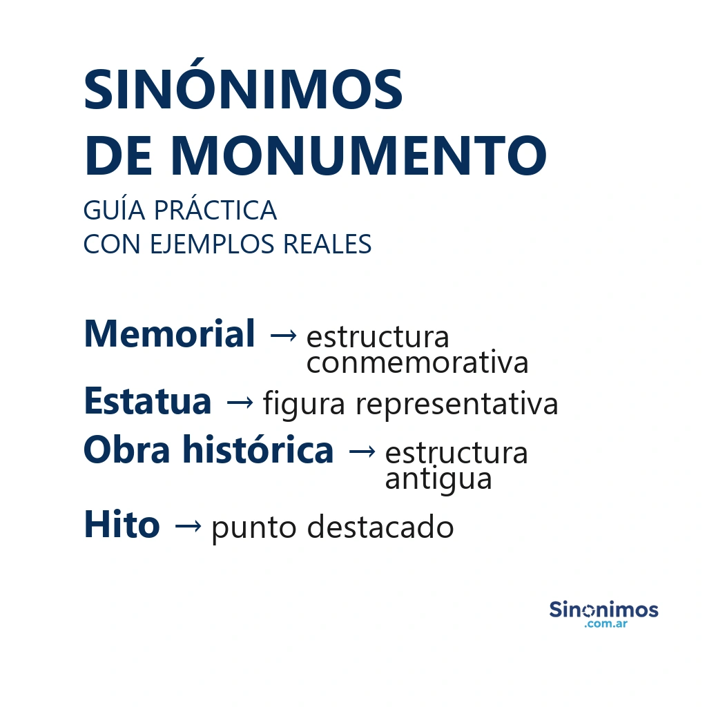 A continuación se agrupan los sinónimos de “monumento” según el tipo de obra, valor simbólico o relevancia histórica que expresan.